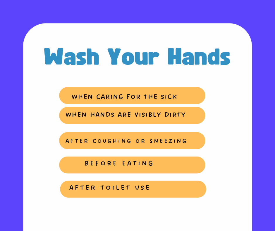 It is advisable to wash your hands before and after specific activities, such as preparing food, eating, using the restroom, and after coughing or sneezing. Additionally, if soap and water are not available, using hand sanitiser with at least 60% alcohol can be an alternative, although it is not as effective if hands are visibly dirty.