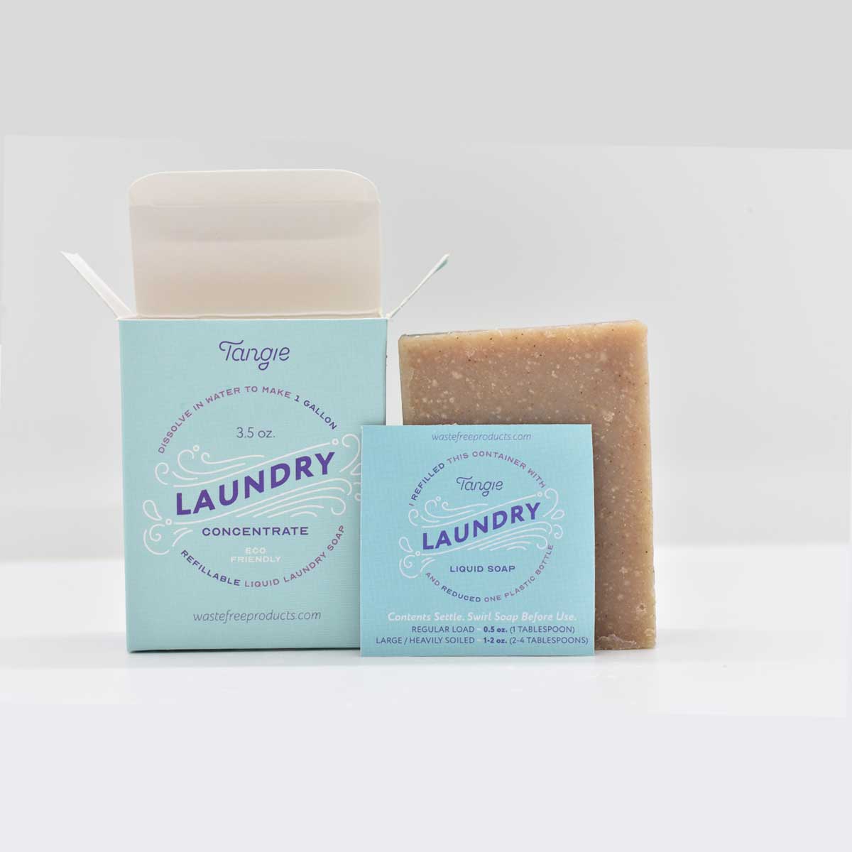 One (1) usage instruction sticker for Tangie Laundry Concentrate comes with each ‘packaged’ bar of laundry paste. If you order the ‘package free’ bar of our zero-waste laundry detergent, it does NOT include an Instruction Sticker or product packaging with instructions.