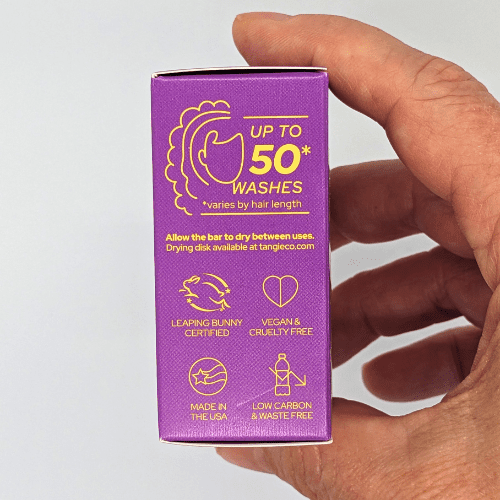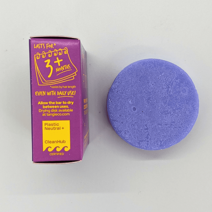 Perfect for blonde and gray hair, this shampoo bar eliminates yellow and brassiness. It’s also effective for pool hair! The Tangie sulfate-free purple shampoo bar is infused with vibrant purple violet dye. With just one or two uses a week, your blonde and gray hair will transform into vibrant, shiny locks—no yellow in sight!