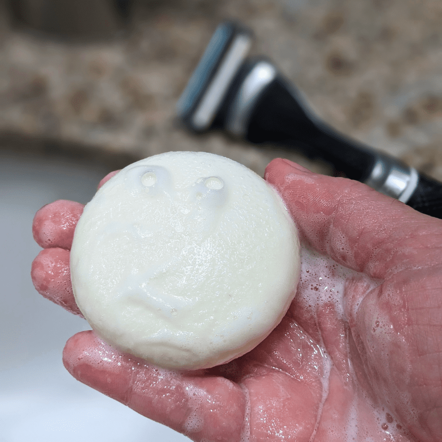 I have been using this shaving soap for a month now. It definitely does the job though it works much better with a brush, than with hands in my opinion. Very happy to have a plastic-free alternative to shaving cream.